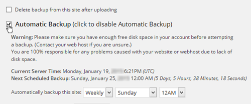 Your automatic backups can run weekly, daily, or hourly -- and you choose the day and time.